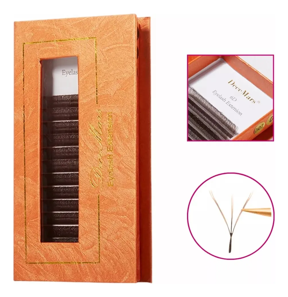 Os Cílios Decemars 6D na cor marrom oferecem um volume marcante, com acabamento leve e natural. Cada leque é formado por 6 fios ultrafinos, garantindo facilidade na aplicação e resultado profissional de alta qualidade.
